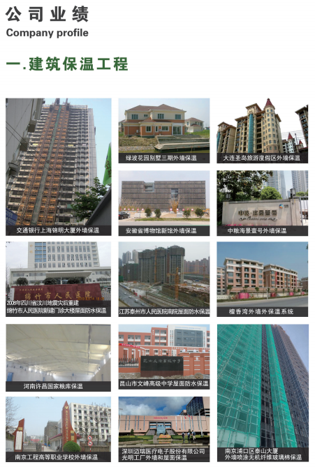 ? 優(yōu)勢業(yè)務(wù):為客戶(hù)提供噴涂聚氨酯硬泡防水保溫隔熱防火一體化施工解決方案;噴涂聚脲防腐防水耐磨防護涂裝一體化施工解決方案; 噴涂無(wú)機纖維保溫、隔音、降噪、防火一體化施工解決方案。