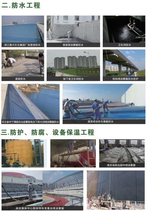 ? 其他業(yè)務(wù):建筑、橋梁、隧道、地鐵站、通道、高架、儲罐、工業(yè)水池、垃圾池、糧庫、冷庫等防水防腐保溫工程及有關(guān)材料的銷(xiāo)售。